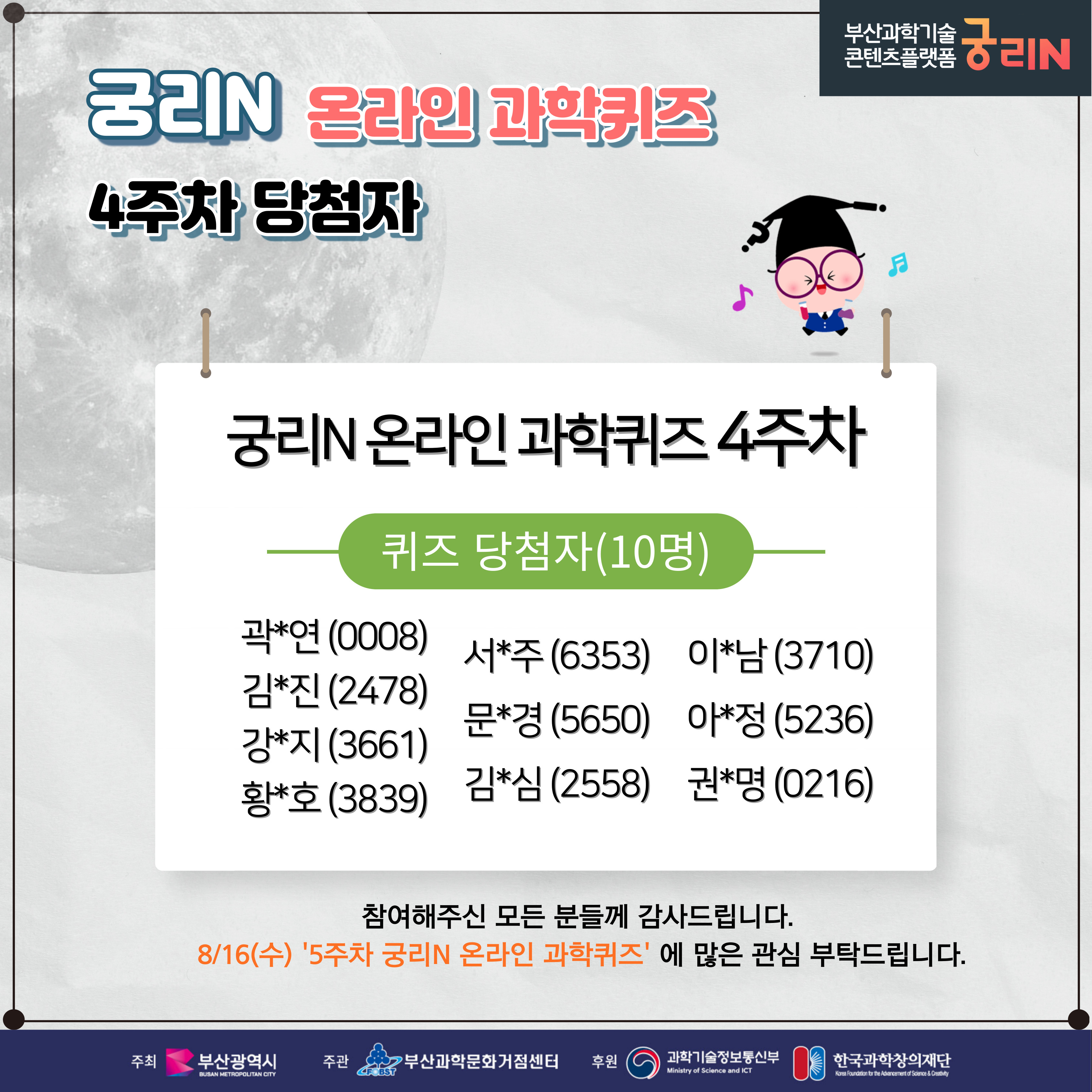 궁리N 온라인 과학퀴즈 4주차 (당첨자 및 정답 발표)