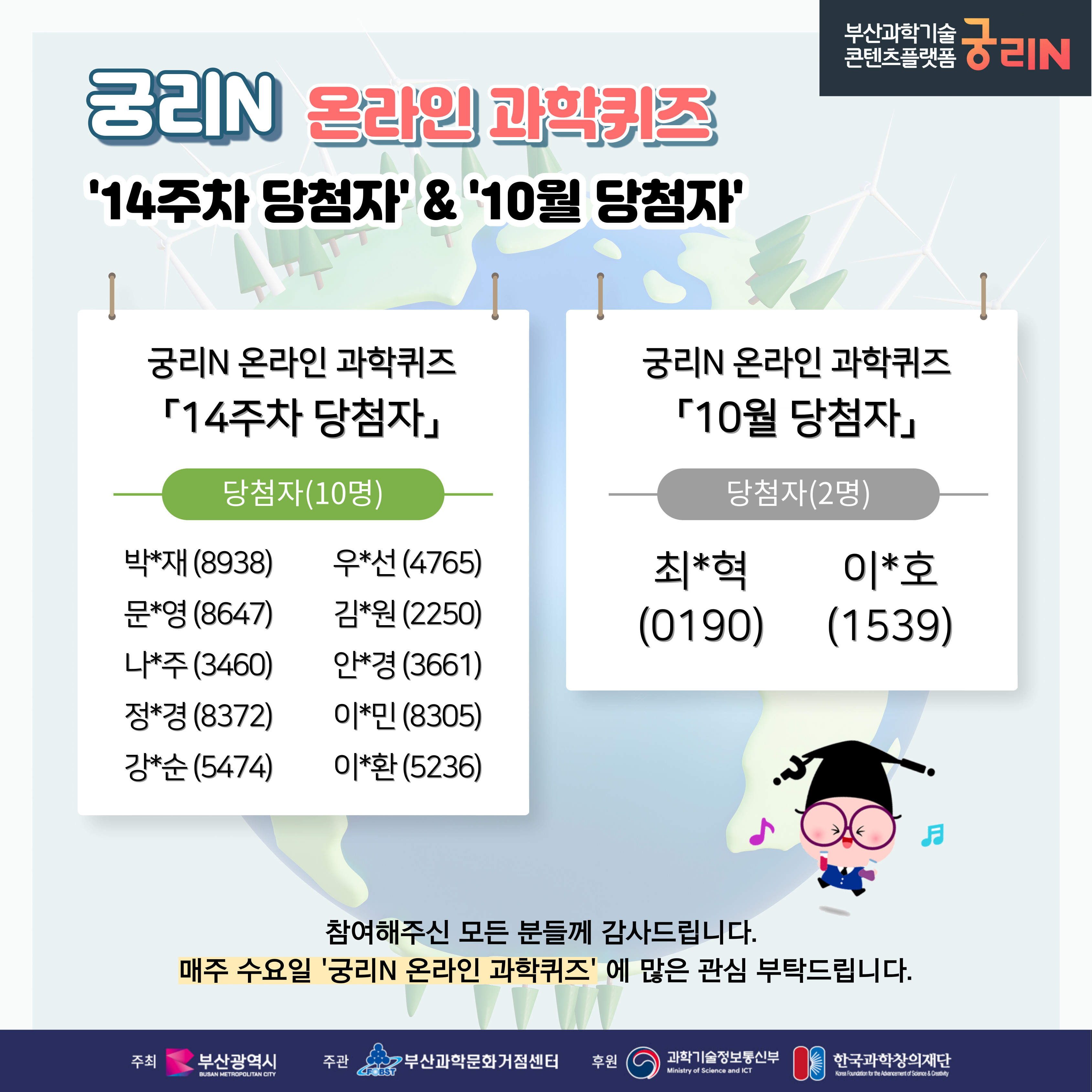 궁리N 온라인 과학퀴즈 14주차 (당첨자 및 정답 발표)
