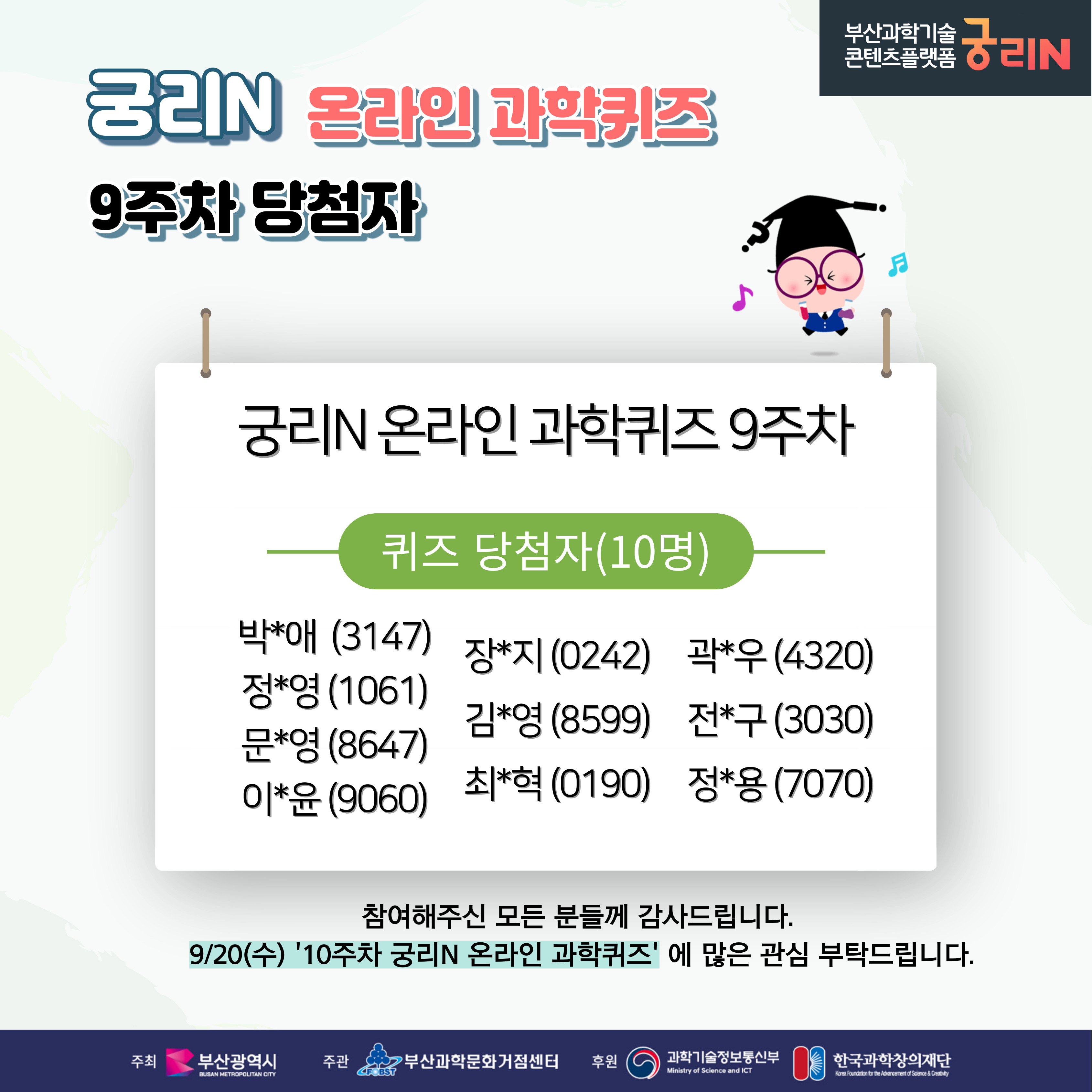궁리N 온라인 과학퀴즈 9주차 (당첨자 및 정답 발표)