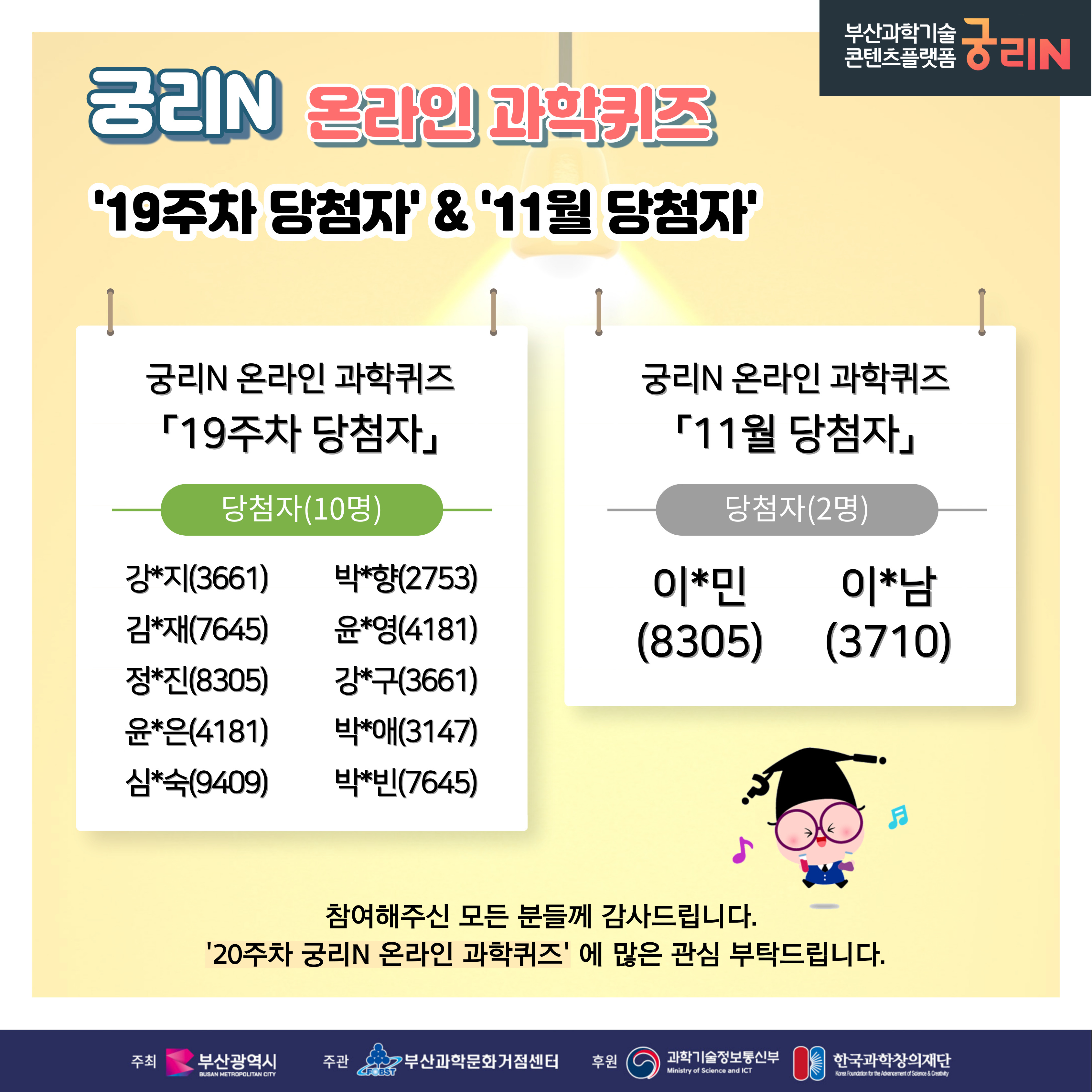 궁리N 온라인 과학퀴즈 19주차 (당첨자 및 정답 발표)
