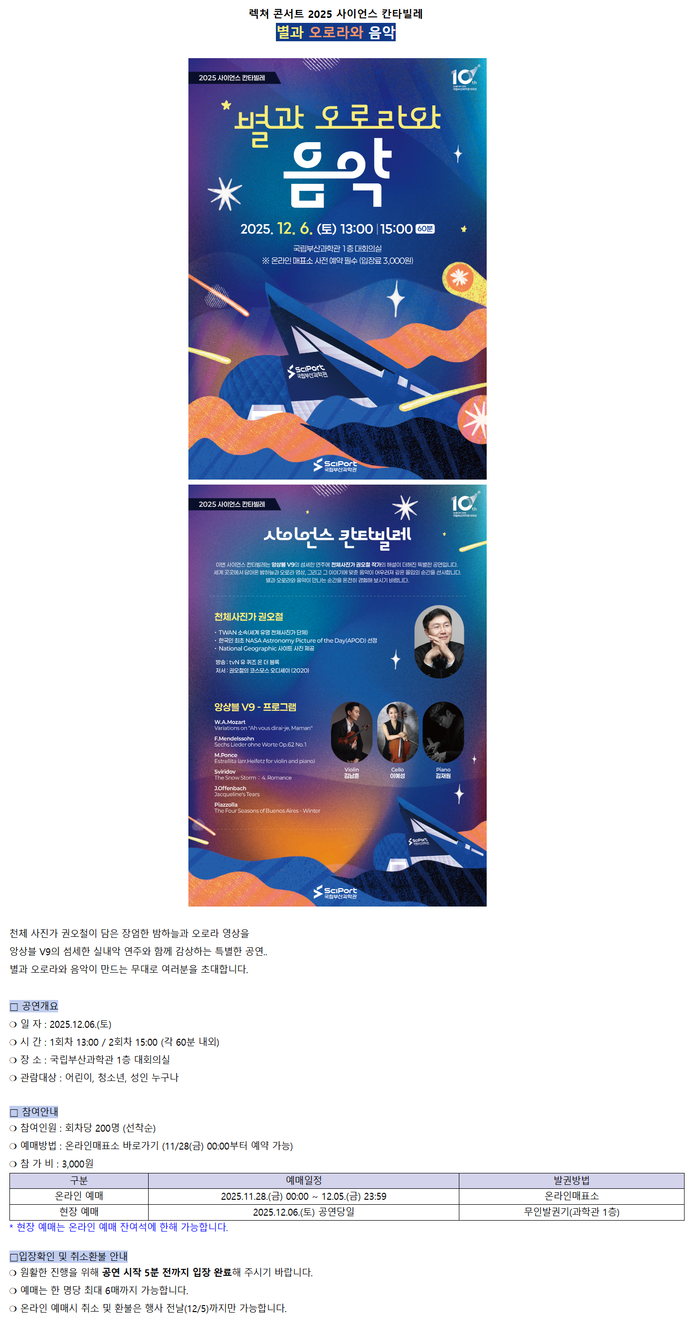 렉쳐 콘서트 2025 사이언스 칸타빌레 '별과 오로라와 음악'